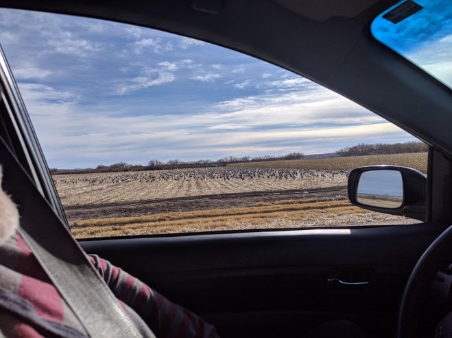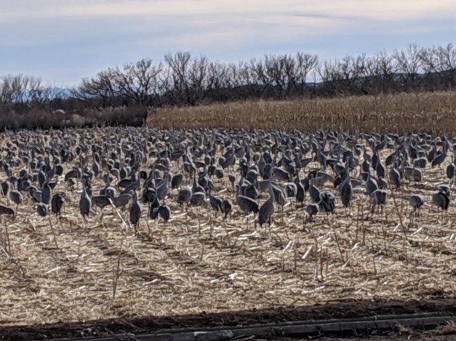 The preserve leaves plenty of grain in the fields for the birds. They seem appreciative, dancing and chortling in big groups.