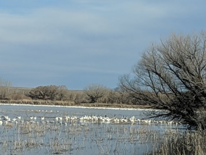 Recently, we visited Bosque del Apache to see the snow geese and sandhill crane migrations. The ideal time to visit is at sunrise in mid November, so one can see the cranes vortex up to the sky at dawn, and when the cranes and geese are at peak numbers. Still, even in January, there were still a lot of beautiful birds to see.