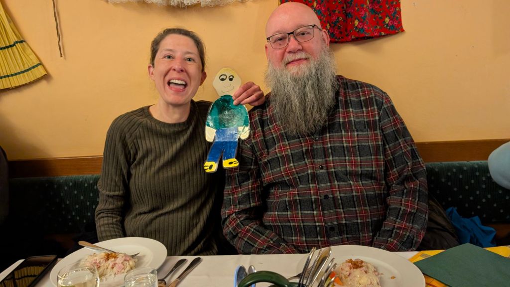 Stanley met new friends. This is Erica and Eric. They like to play board games, dungeons and dragons, and meeting Stanley This is part of the dinner Stanley ate. Traditional Czech food