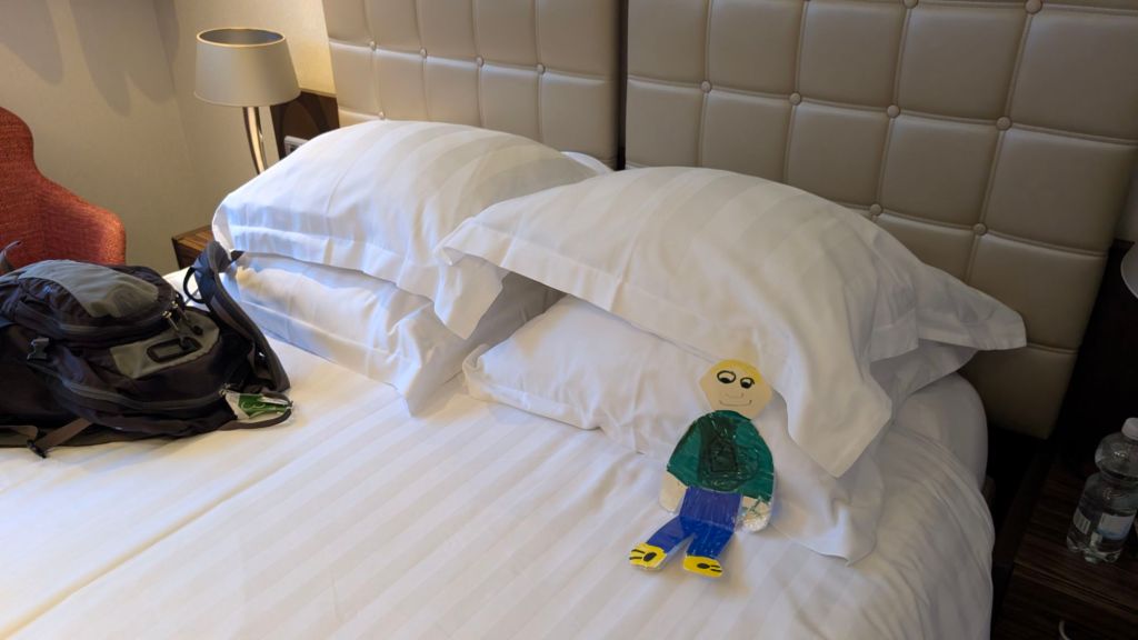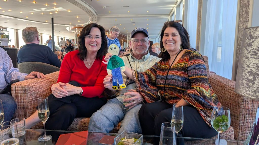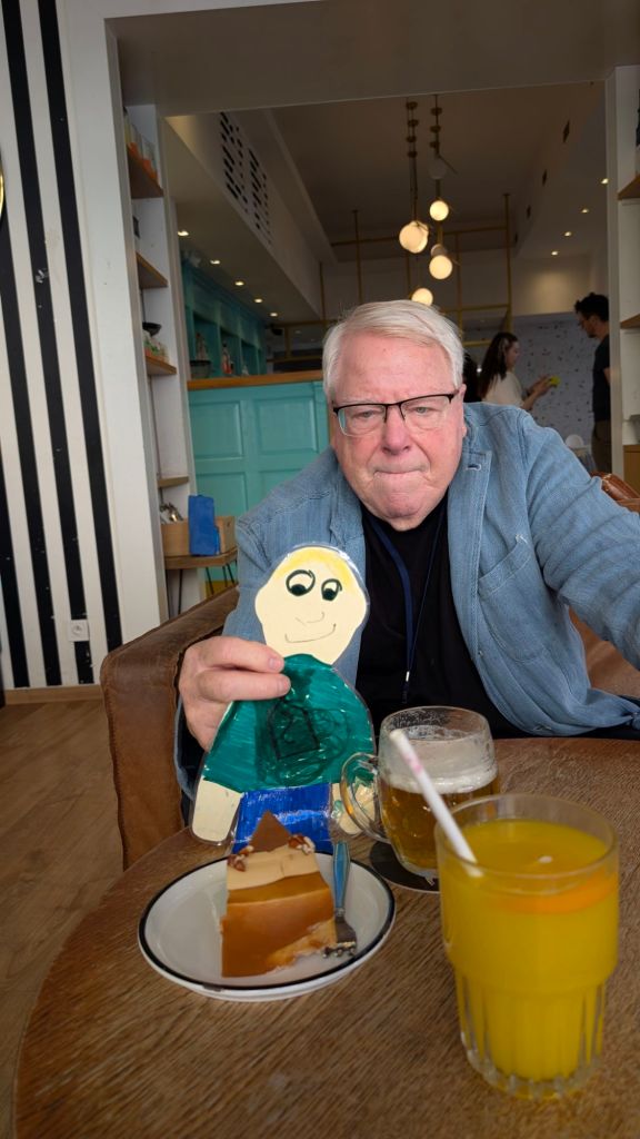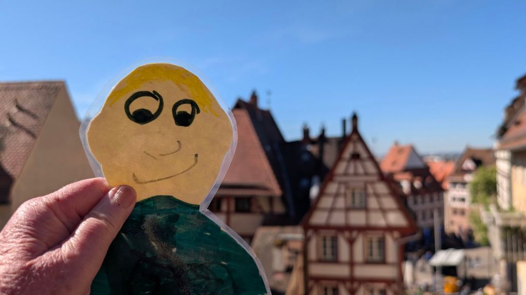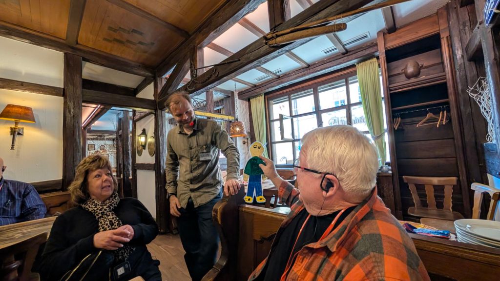 Stanley had a sweet pecan caramel desert on the way to our ship in Nuremberg He thought the ship beds were cozyHe made lots of new friends on the boat. These were from Arkansas Looking at the bronze map of the overlook at the castleThe overlookStanley liked the half timbered buildings We’re all in a cafe letting Stanley try the local sausage, lebkuchen, and beer
