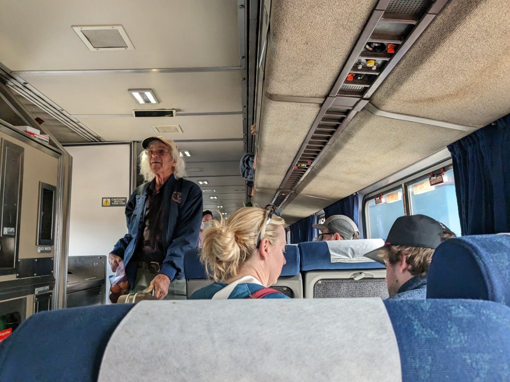 The train ride was smooth enough that one lady wrote and addressed 100 postcards. I jotted down notes in my journal using my fountain pens, and admired the beautiful scenery. The trip was sponsored by the Wheels Museum in Albuquerque. The train was immaculate and comfortable, with lots of leg room. There is a cafe onboard, with light snacks and a wonderful observation deck with huge windows.