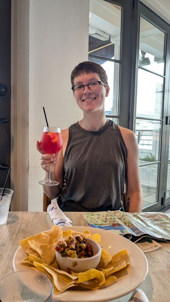 Because of the timing of the connecting flight, we didn’t get to eat breakfast, and those little cookies in the plane were not an adequate substitute. I was hangry by the time we got our bags, caught the hotel shuttle and checked into our hotel, the doubletree airport. Of course, their restaurant was closed until 4 PM so those wickedly delicious cookies they give you at check-in had to suffice until then. Sugar high then a nasty crash. There are no restaurants within walking distance. The hotel does have a small market but it was almost exclusively sweet or junk food. I did check GrubHub and they had some enticing options but Ray needed to sleep and I didn’t want it to disturb him with a delivery.