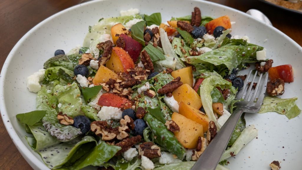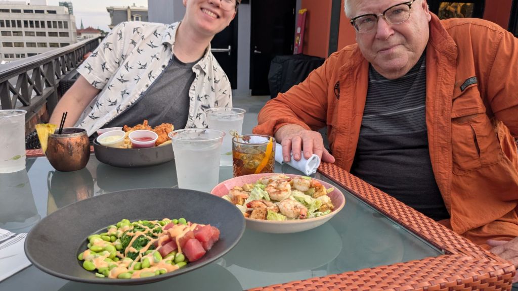 The next morning we ate at the Double Tree’s breakfast restaurant. The staff was lovely but it seems the provisioning needs some help I ordered an omelet with fruit on the side. Instead I got fried potato cubes on the side. They offered to fix it, but then came back saying they were out of fruit. Guess Ray’s yogurt/fruit/granola used up the last of their fruit.