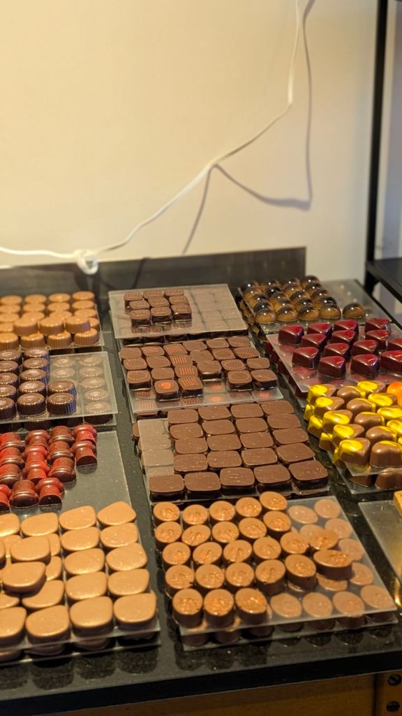 The workshop was educational and fun. But the best part was trying lots of chocolate, and enjoying a glass of prosecco as a palette cleanser.